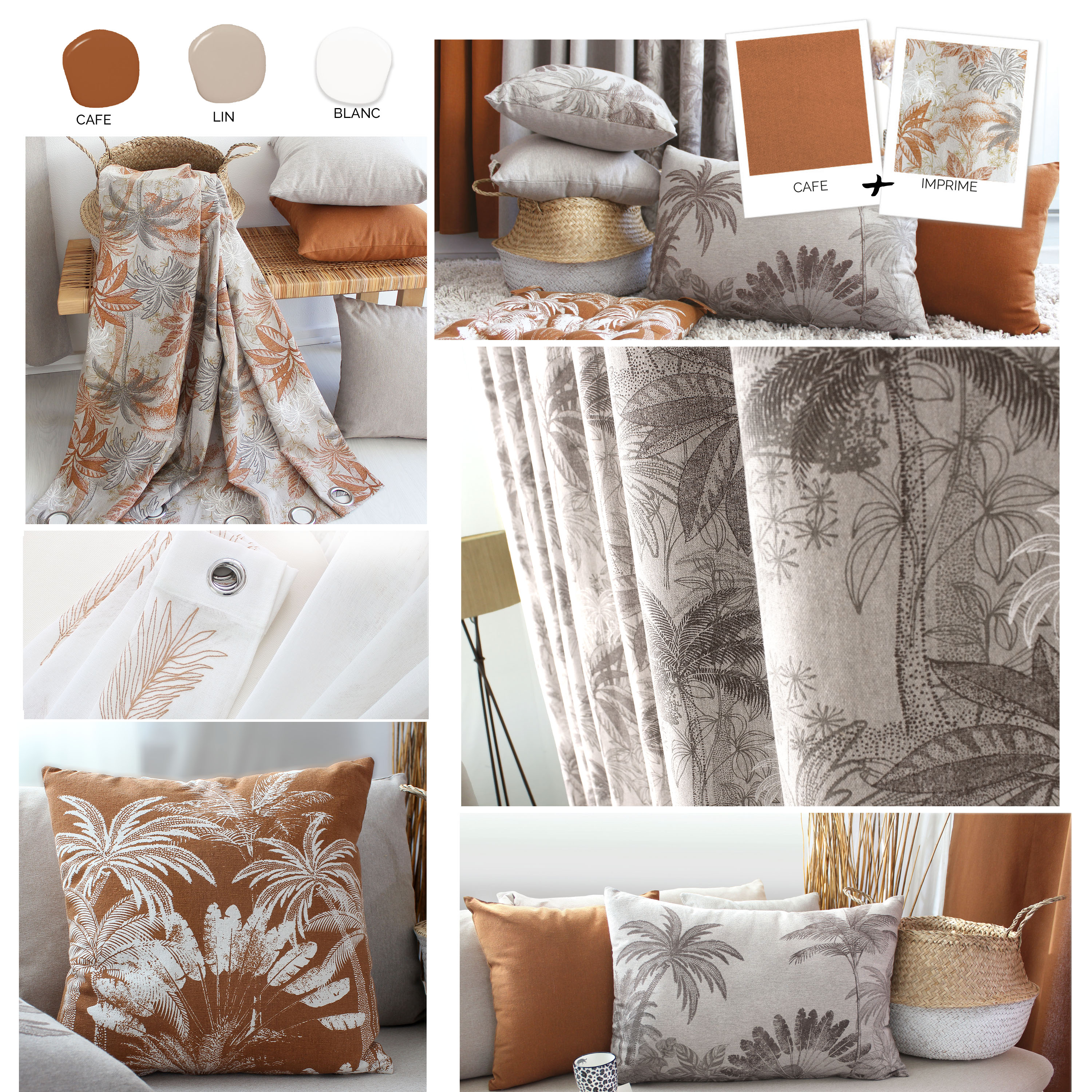 Ce qui nous inspire: Bali, ses palmiers et son artisanat et les couleurs authentiques et naturelles avec un effet lavé.