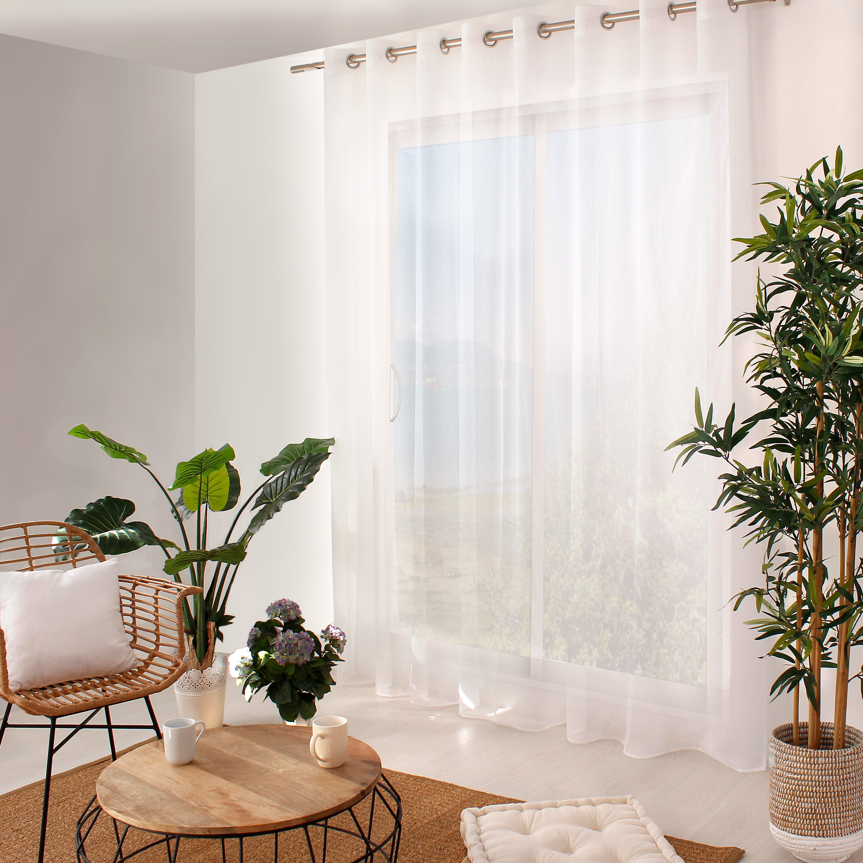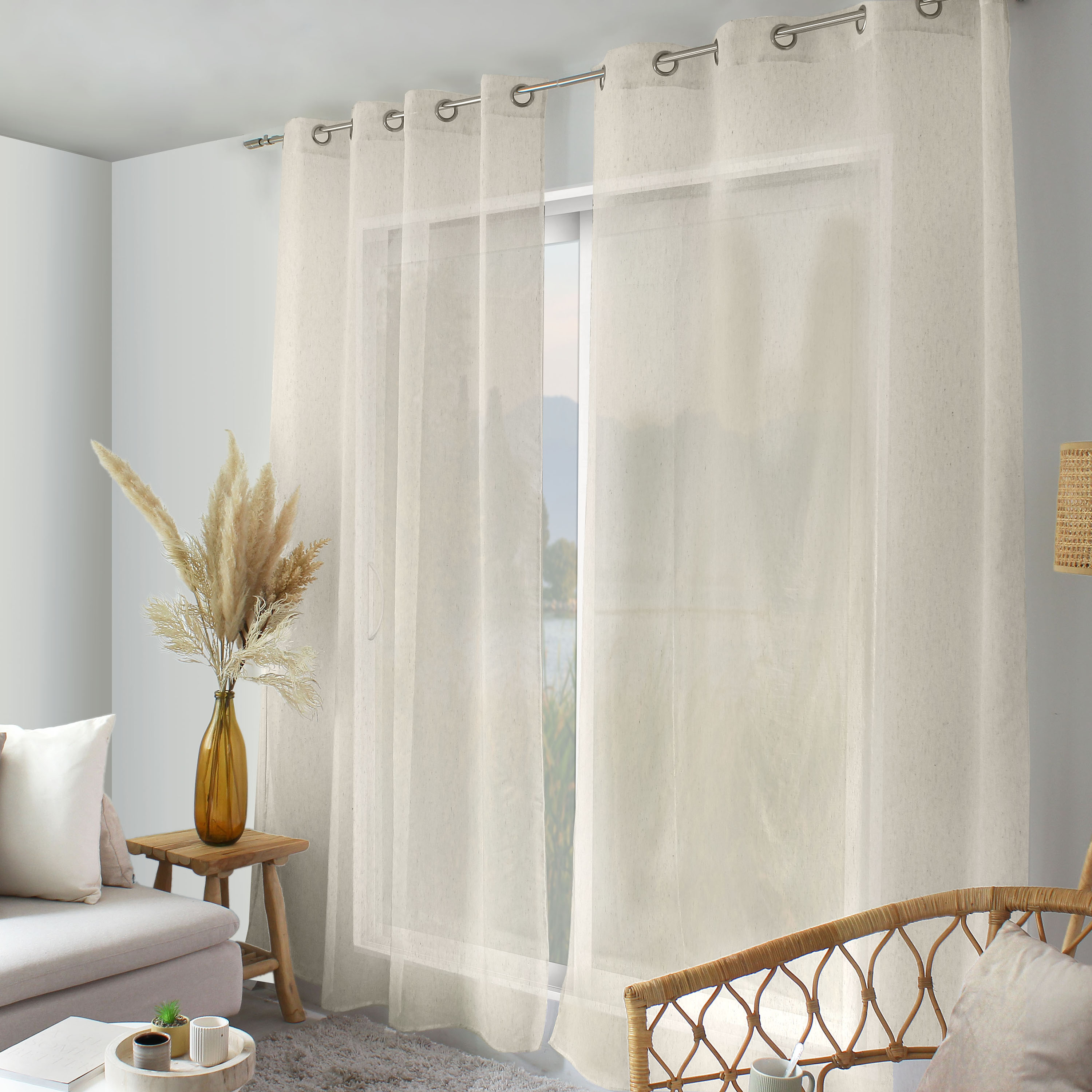 Le voilage 15% lin apporte une déco naturelle tout en tamisant la lumière.